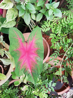 Another good thing with Caladiums is that you can work out a combination planting arrangement with them, they are not fussy in sharing with other plants and actually they really look good complimenting with other colored featured foliage plants.