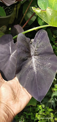 This particular Colocasia have very strong similarities like Black Ripple Colocasia however the leaves do not have any ripple effect on them. Also this particular one does not have a glossy effect rather very much behave like a darker version of "Black Magic" however, it does not turn green when lacking bright sunlight - "Black Magic" however will revert to green tones when lacking the required sunlight.